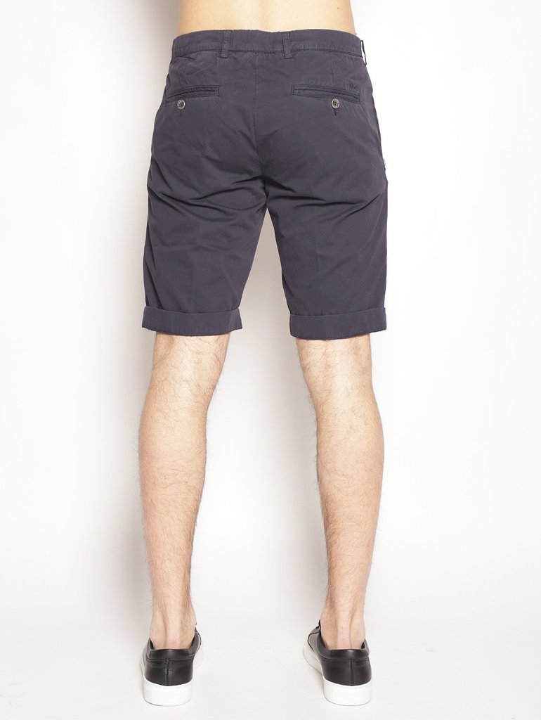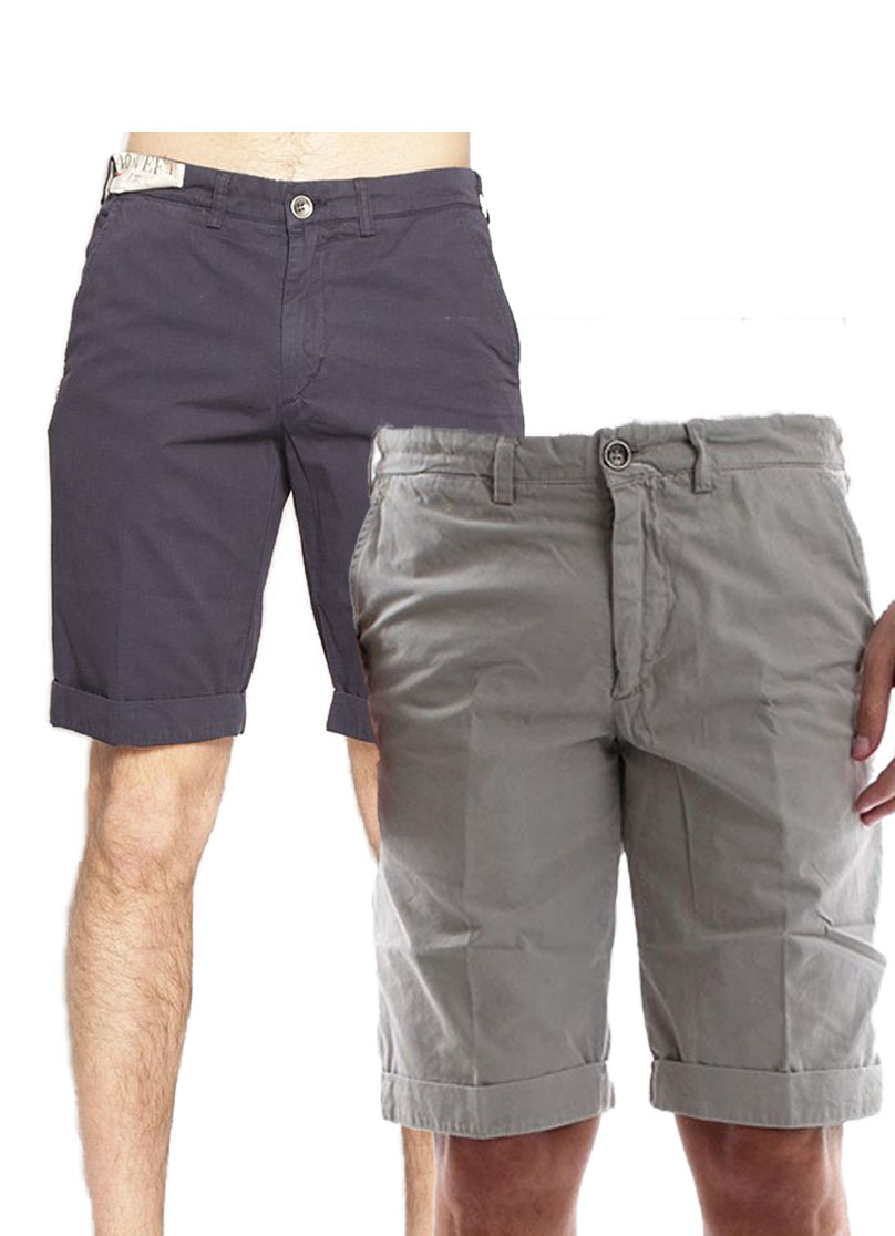 Bermuda tasche a filo, disponibile in due varianti di colore grigio chiaro o blu scuro, chiusura centrale tramite zip e bottone.