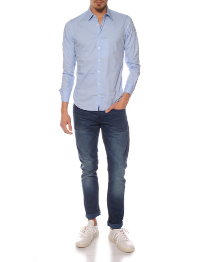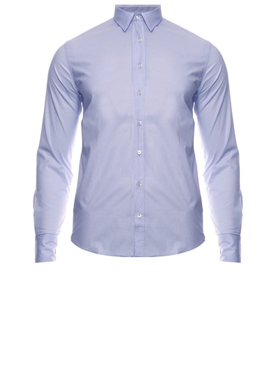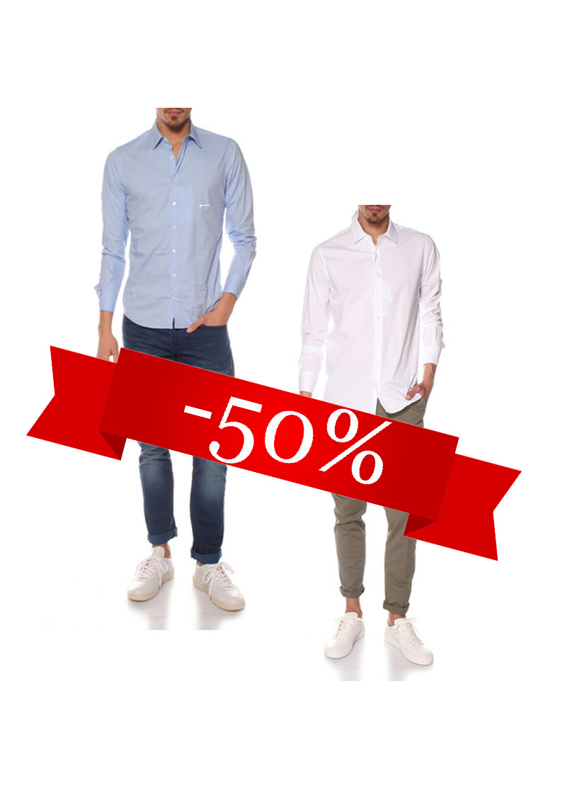 Camicia colletto classico, chiusura tramite bottoni, ripresa centrale sul retro, disponibile in due varianti di colore il classico bianco o color cielo chiaro.