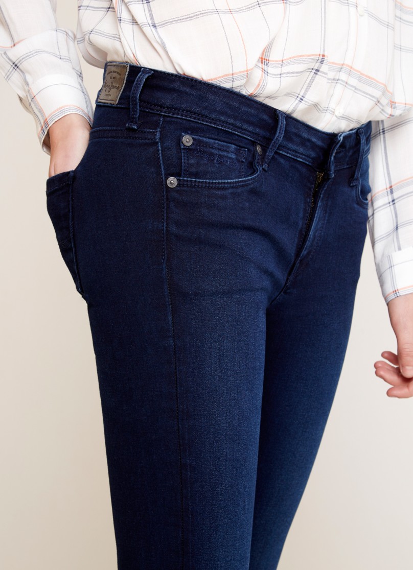 Jeans slim fit, slim leg, lavaggio scuro, cinque tasche, chiusura centrale tramite zip e bottone, tecnica vacuum seal modellante, di rinforzo e di supporto alla figura.