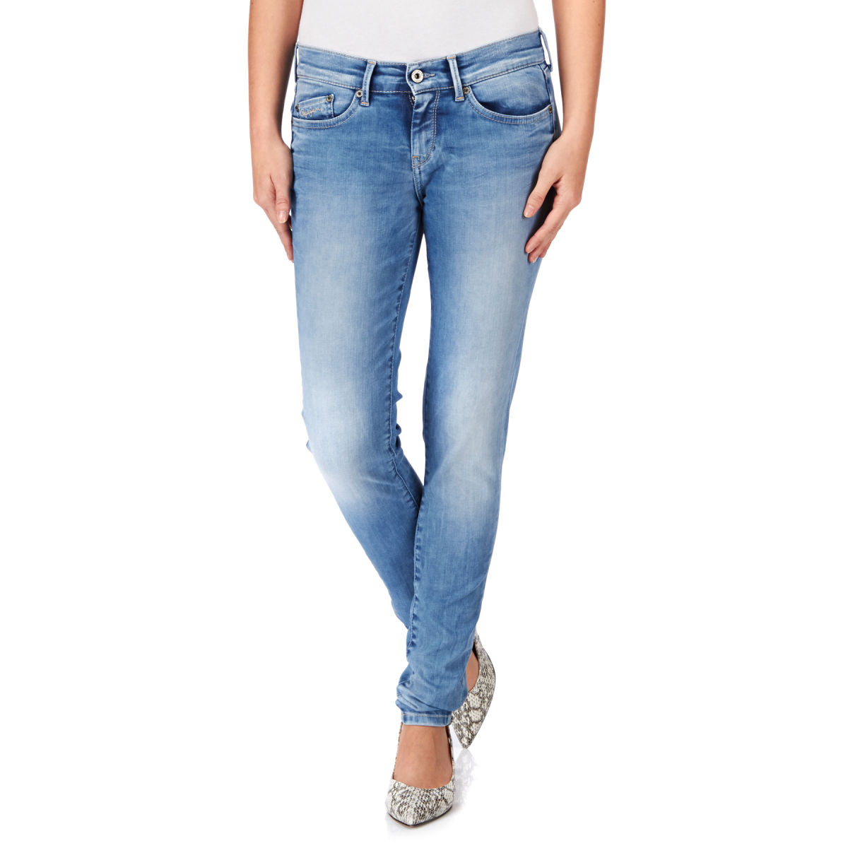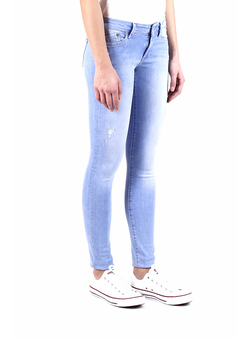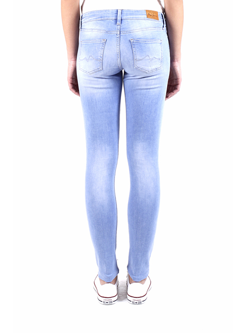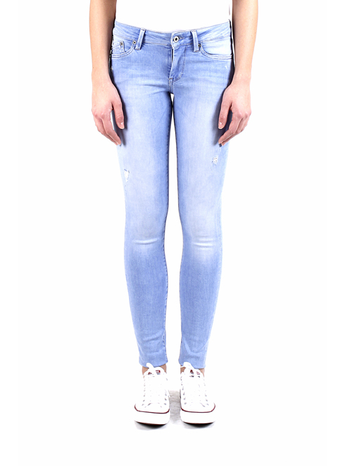 Jeans skinny fit, legging fit, lavaggio chiaro, cinque tasche, chiusura centrale tramite zip e bottone.