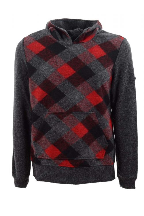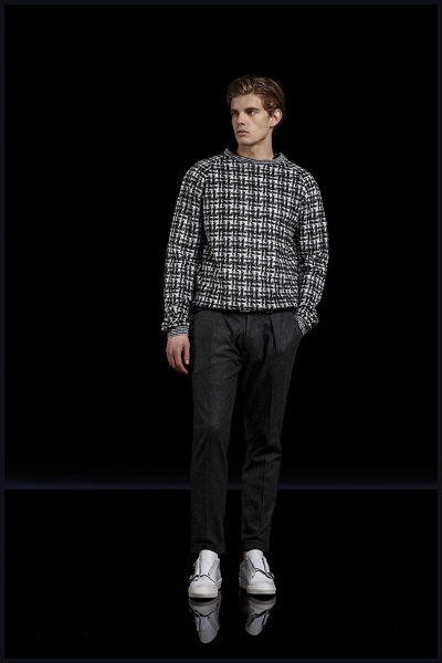 Felpa girocollo, manica lunga, fantasia pied de poule bianco e nero.