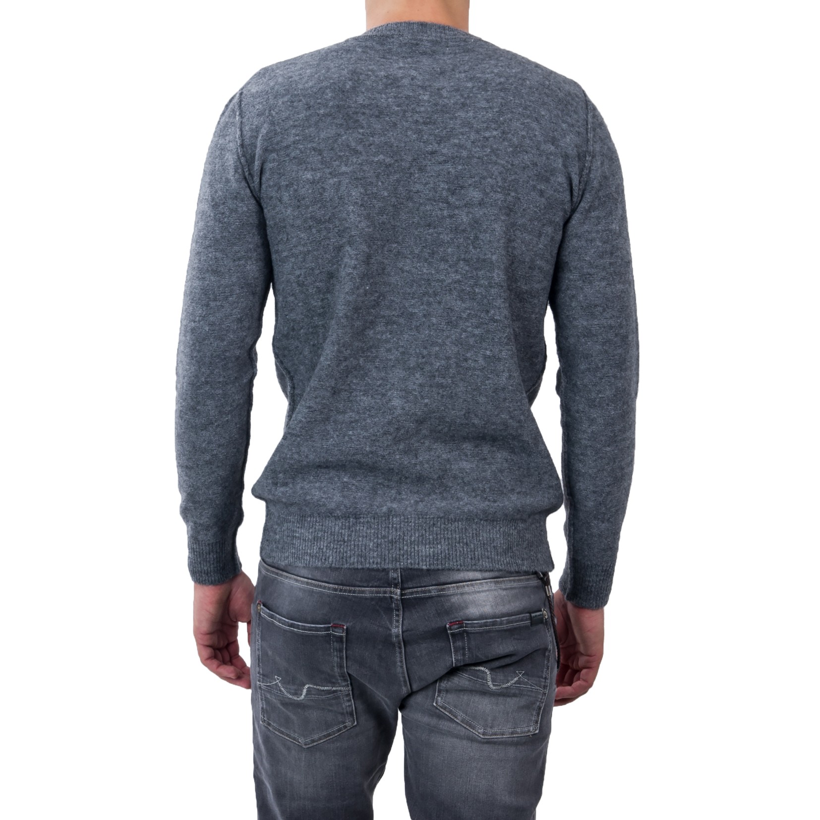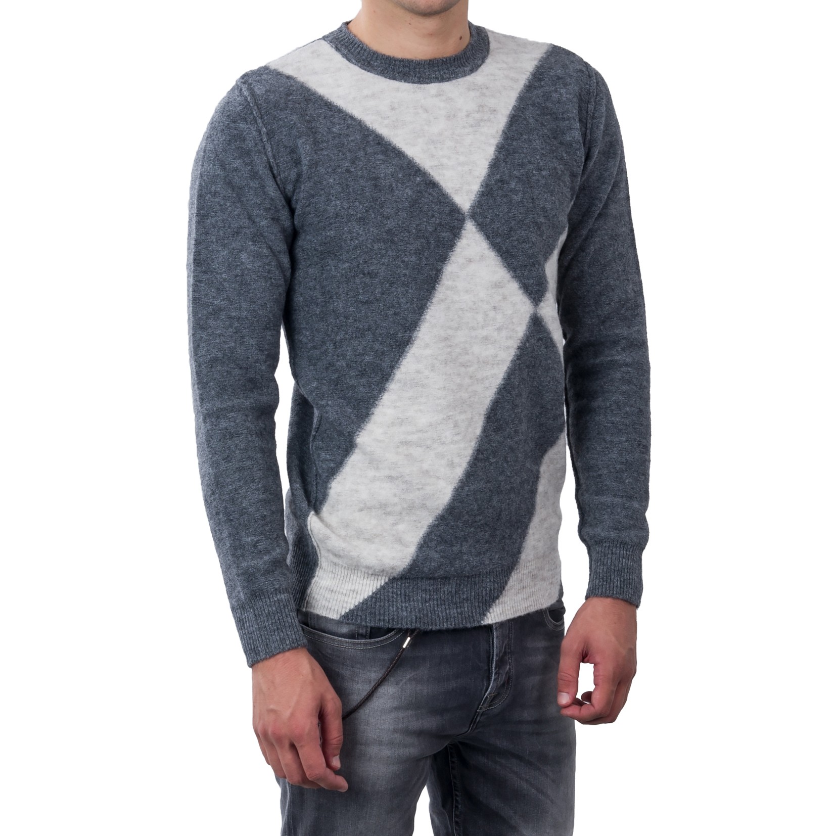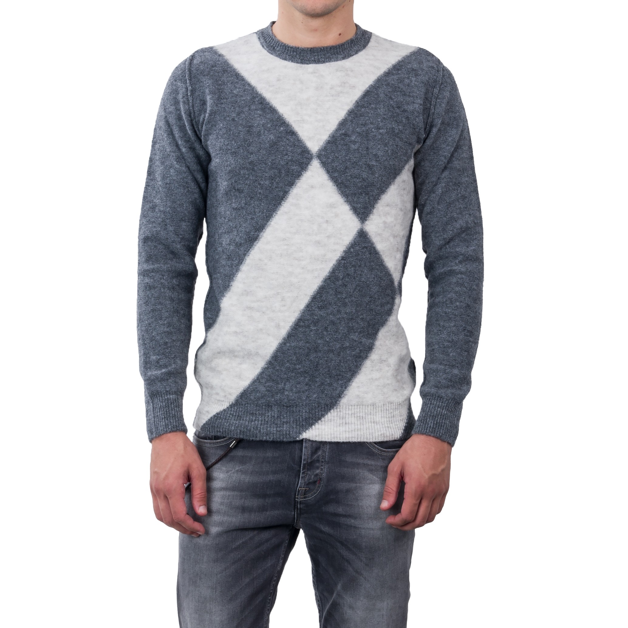 Felpa girocollo, grigia con rombi color panna, manica lunga, orlo polsini e fondo elasticizzati.