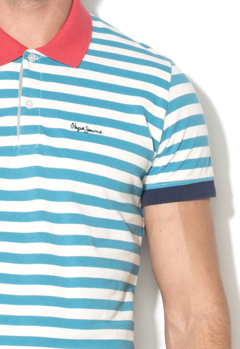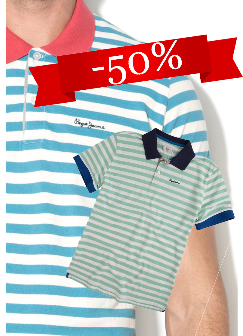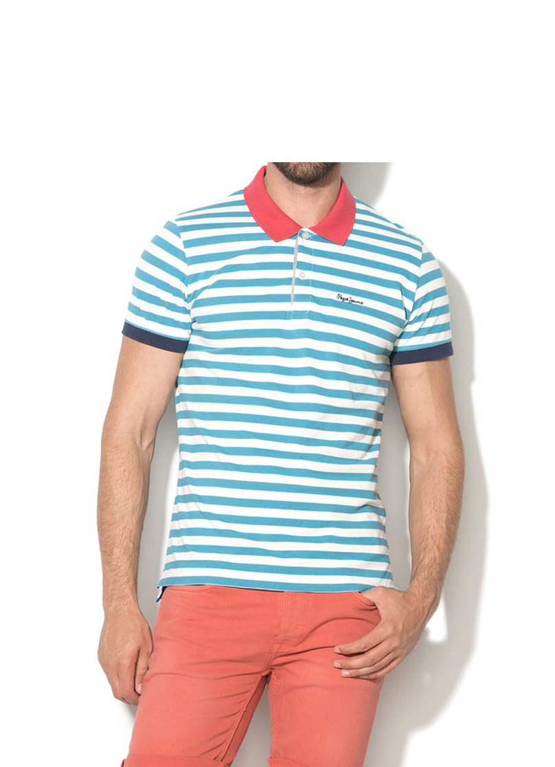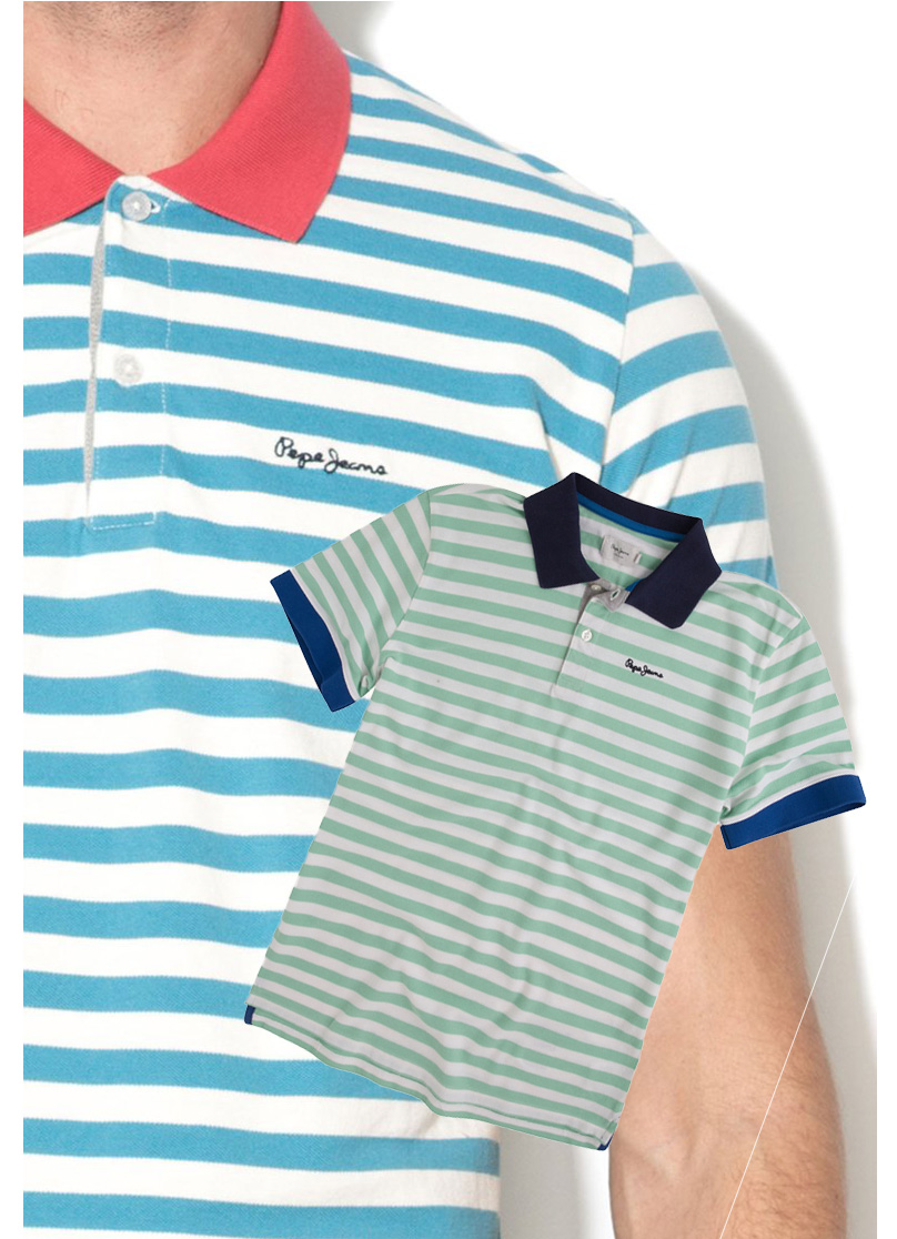 Polo manica corta, colletto classico, chiusura tramite bottoni, spacchi laterali, stampata con motivo a righe, disponibile in due varianti di colore.