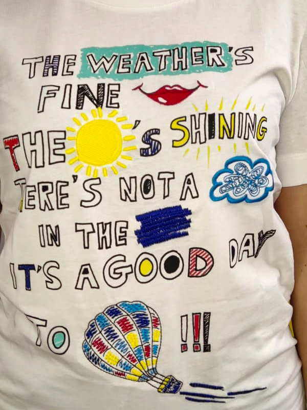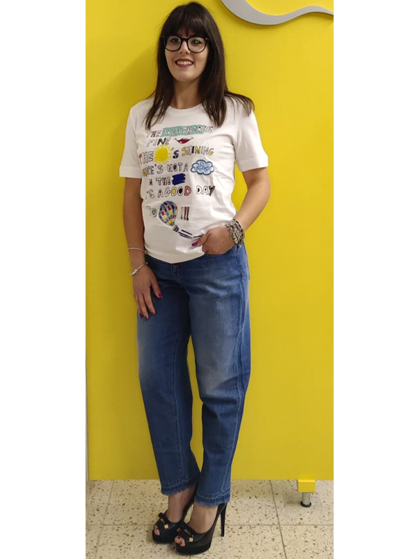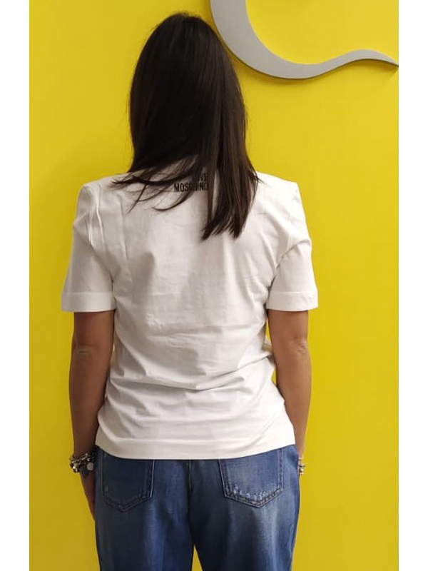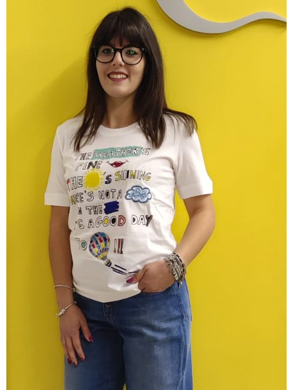 Maglia manica corta, girocollo, bianca con dettaglio sul davanti ricamato.