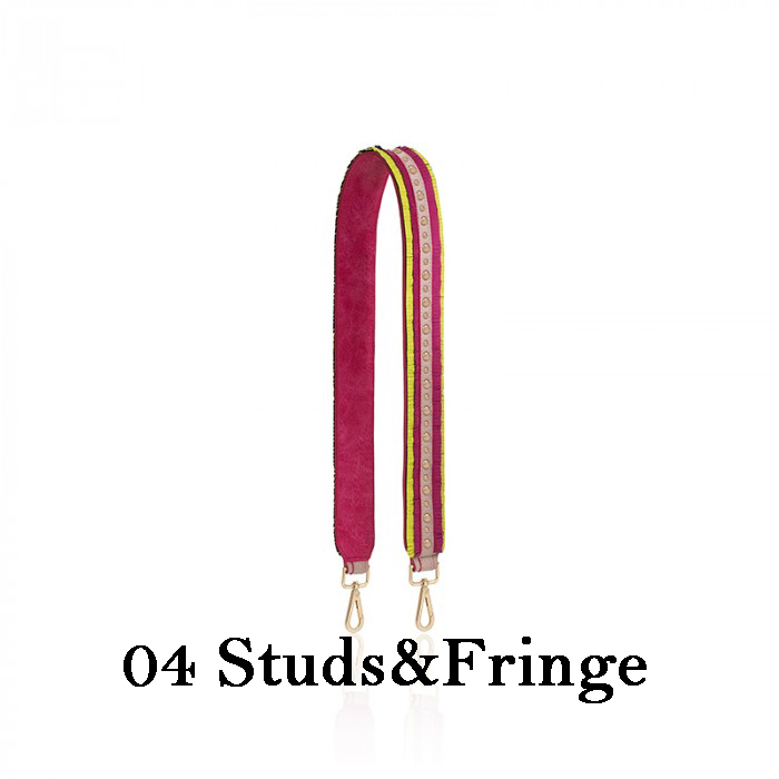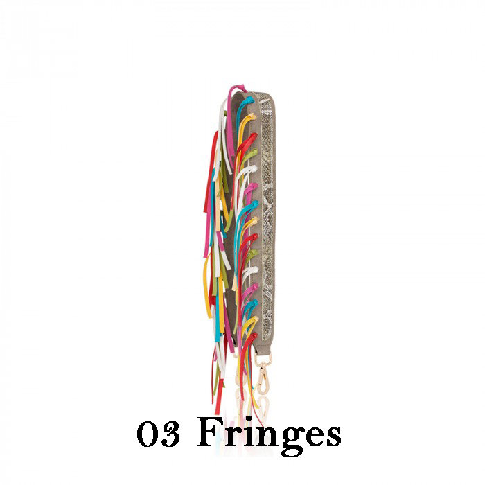 Simpatiche e colorate tracolle in poliuretano, tessuto e applicazioni varie (borchie, eyelets, paillettes e frange). Grazie a due pratici moschettoni possono essere attaccate a tutti i modelli della linea numeroventidue per regalare un tocco glamour al vostro accessorio.