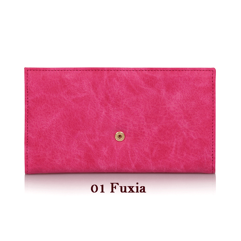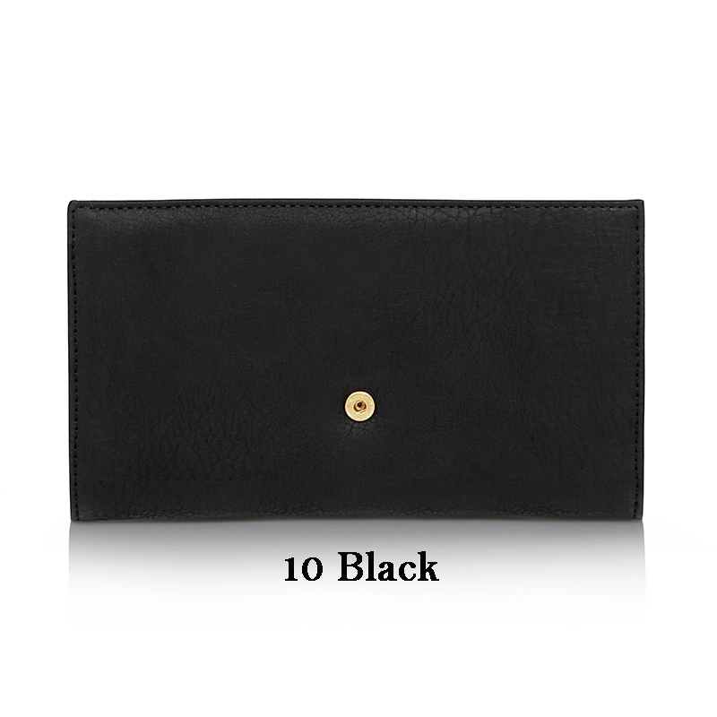 WALLET: portafogli in poliuretano, composto da body e flap, uniti da una cerniera. Può essere utilizzato anche come pochette applicando una tracolla sottile in catena, disponibile in due lunghezze, una lunga e una corta.